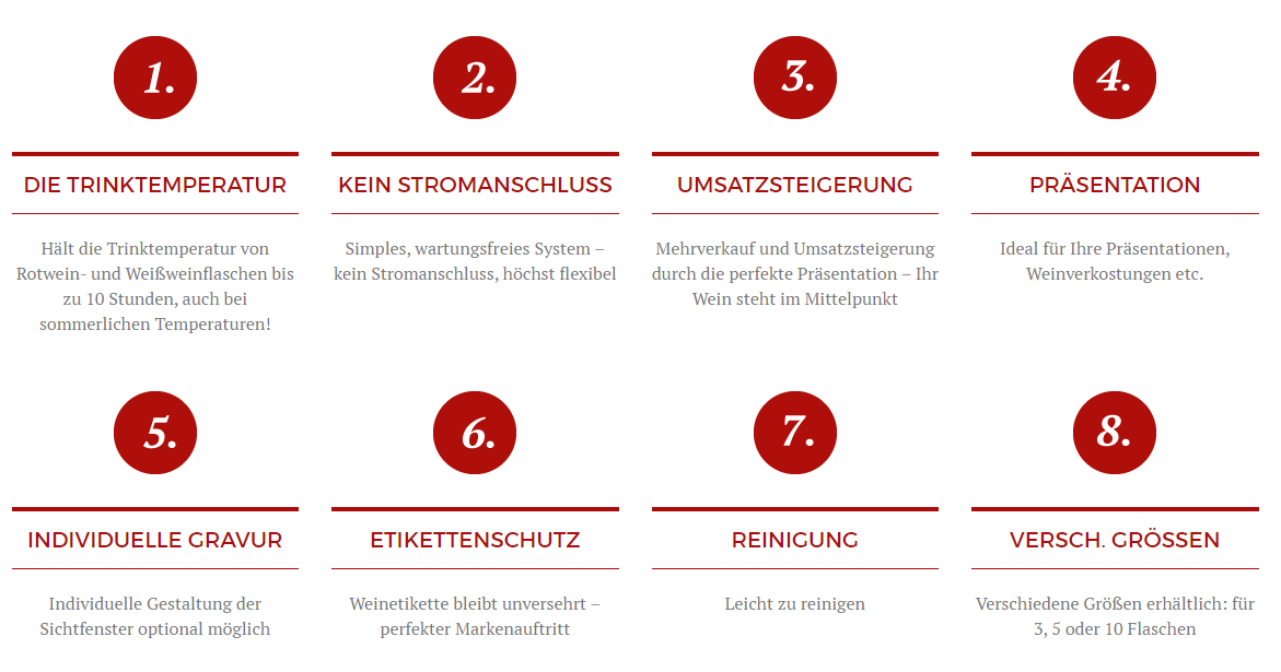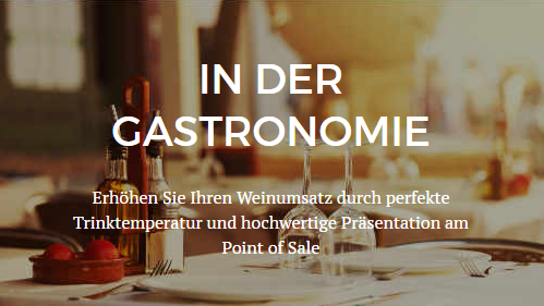 Egal ob es sich um eine perfekt gelungene Weinpräsentation, um Ihren Gastronomiebetrieb oder um eine gute Flasche Wein mit Freunden handelt. Mit dem EVENT-Cooler ist höchster Weingenuss garantiert.